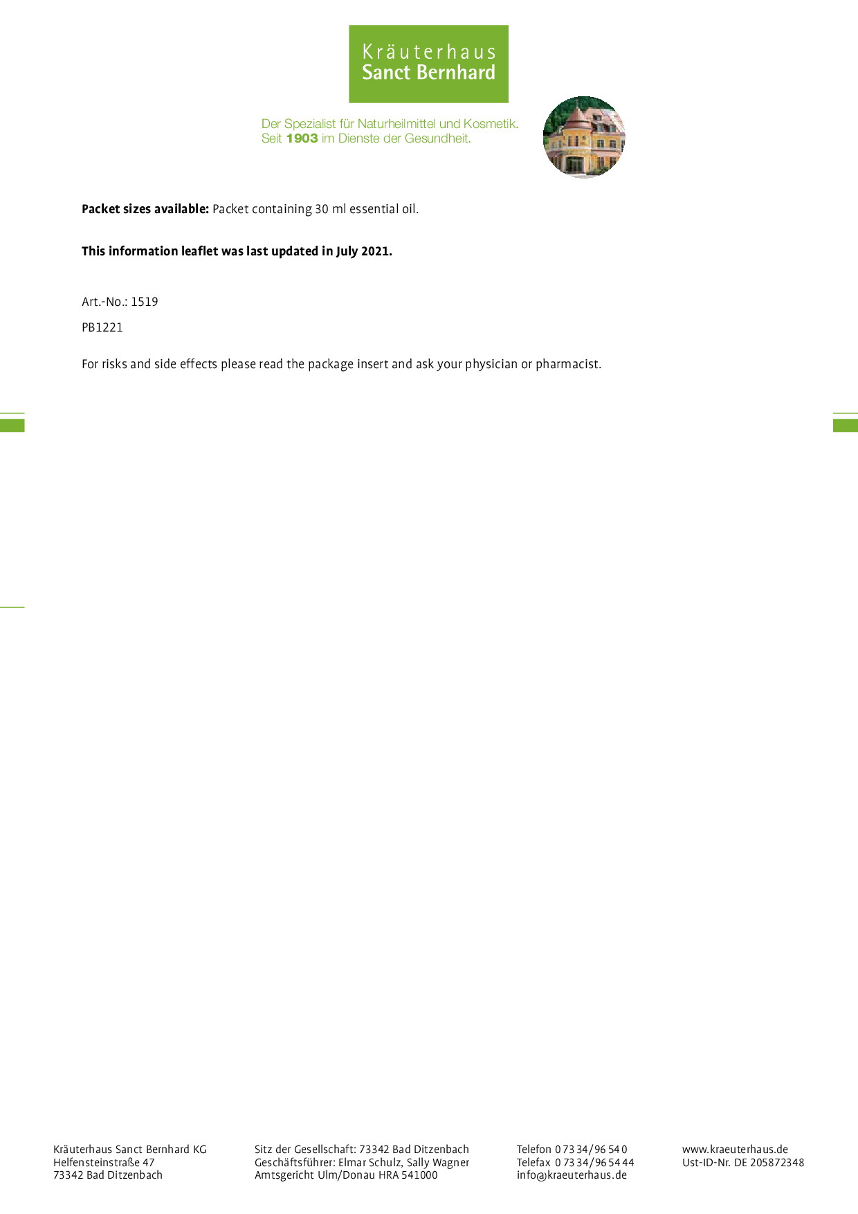 We, at Sanct Bernhard, are a traditional family business based in the Swabian Alb. We have been producing high-quality food supplements, body care products and natural remedies since 1903. Quality is a top priority for us, because your health is close to our hearts.