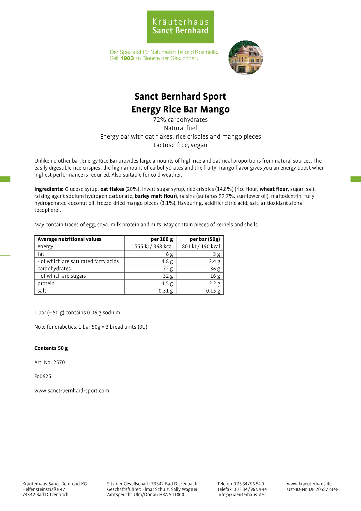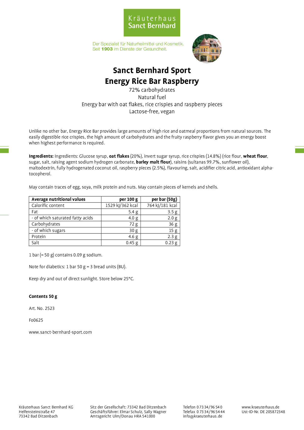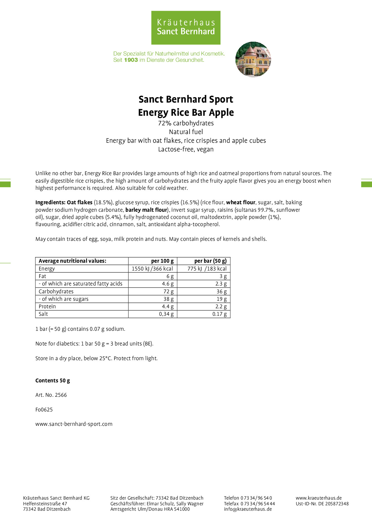 Unlike no other bar, Energy Rice Bar provides large amounts of high rice and oatmeal proportions from natural sources. The easily digestible rice crispies, the high amount of carbohydrates and the fruity flavor gives you an energy boost when highest performance is required. Lactose-free, vegan.