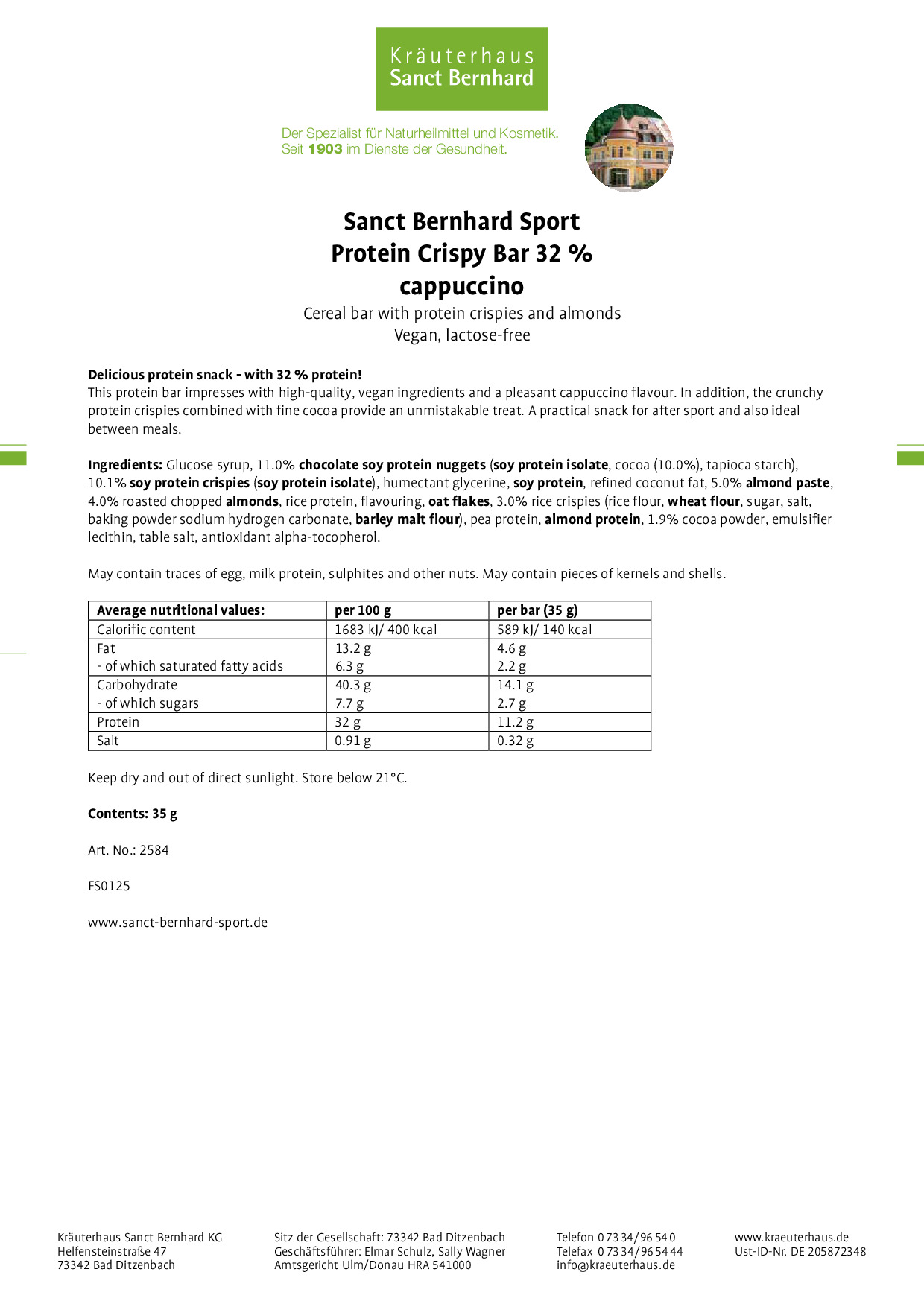 - 1x Protein Crispy Bar 32% Cappuccino 35 g