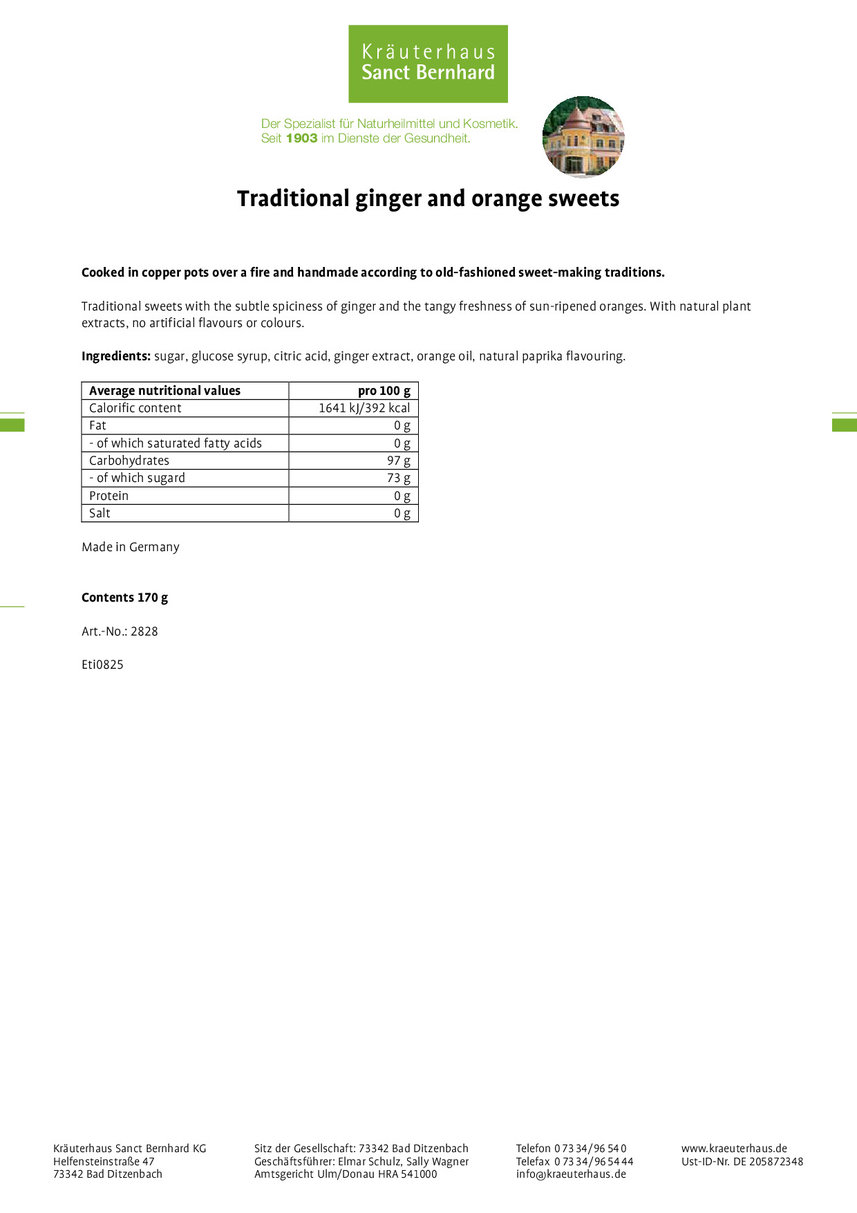 Traditional sweets with the subtle spiciness of ginger and the tangy freshness of sun-ripened oranges. With natural plant extracts, no artificial flavours or colours.